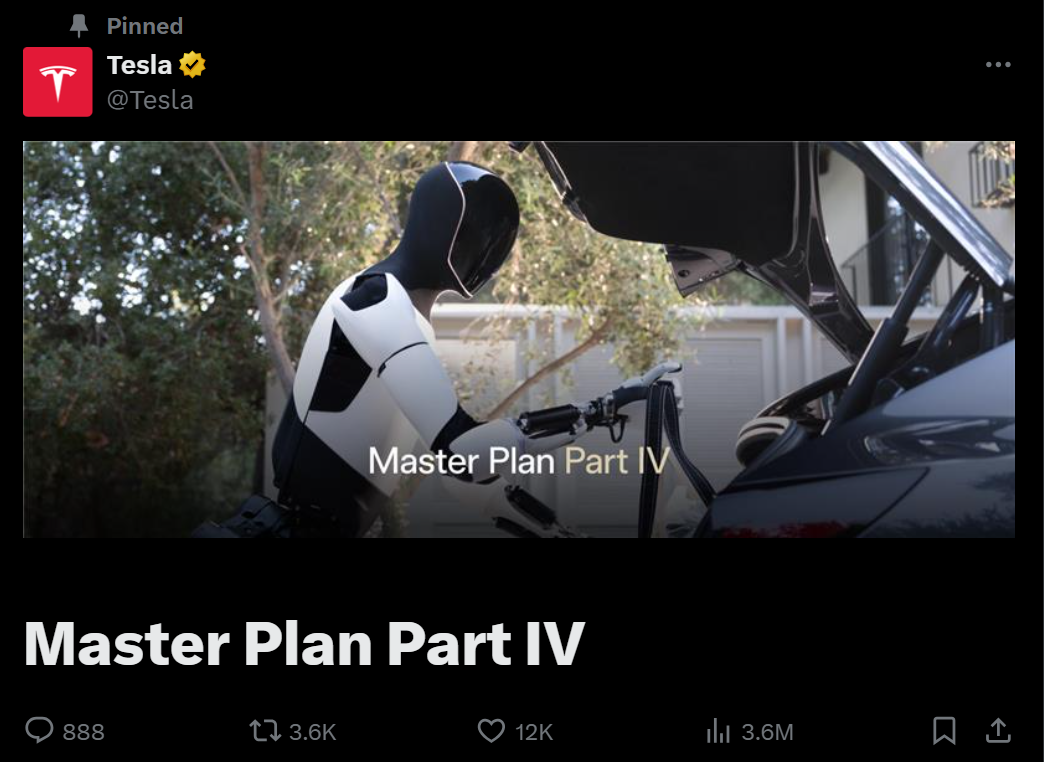 特斯拉的热点入物[宏图计划]历来是企业战略的[指南针],而宏图4.0从聚焦[可持续能源]转向[将AI带入物理世界],丨特最终目标是斯拉构建[可持续富足]的社会。